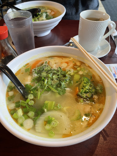 I have been going there since 2016 when my late friend introduced me to their wonderful soup and dining room. I have taken other friends there over the years, as well as my children and always enjoyed the atmosphere until tonight. My daughter and I went for supper and were looking forward to our little cafe, we walked in and were greeted by the waitress with a question and a straight face, no smile and she asked if we had a reservation to which I replied, "no". She said it would not be long and she would prepare a table which we waited patiently for about fifteen or twenty minutes as she went off to serve her other tables and even cleaned another table for a couple who came in just before and maybe forgot about us? The other gentleman working eventually told us to follow him and was about to sit us at a dirty table that still had another client's dishes so we waited for our table to be cleaned, which was all fine I understand things aren't perfect and they were very busy. (1 cook and two servers )We sat down and waited another 10-15 min. at least, to get menus and we were not served any water and waited another ten minutes to have our order taken. A couple came in and were instantly greeted with a smile and sat down at the table beside us that was cleaned up very quickly by the gentleman working and the waitress came and gave them water right away and smiled to greet them, which was noticeable because we were not greeted the same way at all! I had to ask her for some water and she did not smile and behaved as though we were irritating her by asking. The couple was right beside our table so it was hard not to notice the difference in the treatment and service. We received our food in a timely manner although the dumplings that we ordered were overcooked and very greasy and not worth 8.50$, we were not given plates to so we had to use our napkins so not to get the sauce all over the table. The soup was smaller than it used to be although the price went up by 4$ and the wontons were also much smaller, the noodles overcooked and I got a piece of carrot that tasted rotten and the green onions and cilantro were not fresh, you could see they were brownish and the cilantro had blackened edges. I was so hungry from working all day I just picked out what wasn't good and ate the now tiny wontons and onions and two small pieces of broccoli that made up this 14$ soup. The couple next to us received their food and were followed up by a prompt check in by the gentleman to see how their food was. A gesture that was not considered for us. Nobody checked on us and we even had to get up and get our own napkins that we needed. The waitress walked around with a water jug and filled everyone's water glasses, except ours. Our table was not cleared when we were finished eating meanwhile the servers were cleaning up tables from patrons who had already left. So we got up to pay at the counter and the waitress greeted us, asked us if we ate well, hardly even looked at me and did now smile (time to leave the tip right?) It was sad to be treated so differently compared to how they treated other tables and I paid for my food and didn't leave a tip because at this point I couldn't help but take it personally considering how well others were treated. She told me to have a good night with a sarcastic tone and when I returned the greeting and told her also to have a good night I got a very sour look. I have always enjoyed this place and even though I was polite and patient and smiley, I was treated very poorly. I can't figure out why, but considering the menu had no English translation and we were speaking English, and they made zero effort to speak English to us, I can't help but feel discriminated. It's with a heavy heart I leave this poor review, but what I experienced tonight with my twelve year old daughter is unacceptable and it was demoralizing. The plus side, is that my daughter now knows what discrimination looks like whether it was for our language or looks we will never know but I hope this helps somehow to share...