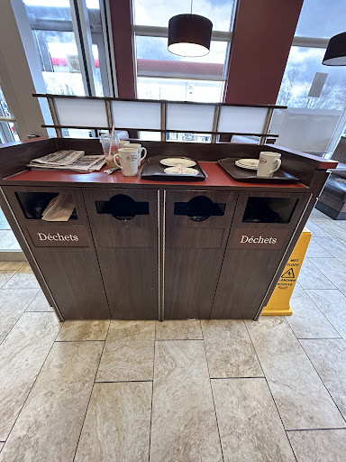 Read mored'habitude j'ai jamais eu de problèmes avec ce Tim Horton la mais la aujourd'hui vraiment il mon mis en colère aucun professionnalisme je suis arriver au service a l'auto et elle ma dit un instant je lui est dit d'accord toute suite après il a un jeune garçon qui ma crié dans le micro UN INSTANT!!!!! et je lui est répété oui j'ai compris . après la fille elle ma demander ma commande et pendant tout le long il avait l'autre garçon qui niaisais dans le micro a souffler dans le micro a chaque fois que j'essayais de parler il il tapait fort des main pendant que je parlais et la jeune fille arretais pas de rire . je lui est demander si elle pouvais me faire un warp poulet abenaro elle ma répondu non je national pu de riz ( mais il était genre 14h ) je lui est demander un warp du travailleurs et elle pouvais pas car il avait pu d'œuf , alors je lui est demander ses quoi qu'elle avait le garçon a répondu en arrière du café!!!!! franchement si tes pas assez mature pour travailler avec le public reste chez vous...