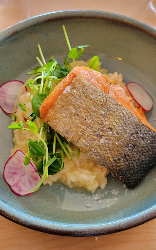 Read moreThe food was fantastic at Gather. I had never had a fish charcuterie board so we shared that for our table first. Such an interesting and delicious take on the seafood. We had the salmon and lemon risotto, polenta fries and spruce tip key lime pie (forgot to take the photo till after I had some). All were fantastic! I had never had polenta fries before but after one in our group suggested we share an order, I'm really glad we did. If you're in the area, make sure this is one...