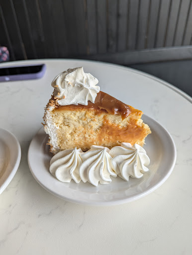 Ā Ā Ā Read moreI've been meaning to visit this place for a while, as it has a stellar reputation! It's tidy and well-kept, and the counter staff was prompt and polite. There was a huge variety of cheesecake options and everything was drool-worthy. Looked to be very precise and high-quality as all the slices were consistent in their size, shape, and decorating. In monitoring their Facebook page, I am surprised they don't have plain cheesecake - there is always something mixed in or drizzled over top. I have a firm belief any place known for cheesecake should have a plain option to demonstrate the cheesecake can stand on its own! Anywho, I had lemon and my husband had turtle. The slices were a good size, not huge, but adequate. I wouldn't change anything about mine. The cheesecake itself had a mild lemon flavor and the texture was a mixture between dense and creamy. The tart lemon curd was excellent and was necessary to have adequate lemon flavor for a lemon snob such as myself. It came with 4 dollops of whipped cream - very generous! My husband agreed about the texture and he enjoyed the chocolate base and mixed in turtle candy, and he didn't find it too rich even though he often does with desserts. His one complaint (and I agree) is it was absolutely swimming in caramel. Totally unnecessary and looked like it made the crust soggy. An artistic drizzle of caramel is all that was needed. Will come again, and looking forward to having a...