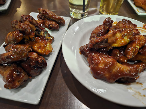 Been awhile since I've been to an actual wing night and wow, this was a good deal!! No wonder why the place was almost packed. High tables, short tables and booths, then also seating around the bar. It is seat yourself. Also accessible. Service was a bit slow to start, but I was also waiting on my company. So took about 10 mins to get a drink. I think there was 3 people that actually waited on our table (taking orders, receiving the orders and check ins) they were all friendly, but we really liked Alexander and he didn't mind our antics. They have a few options for sauces and we asked for his recommendation. I got 2 orders, I tried the Bourbon and the BBQ. I also added the sauce they use for the fried Dill pickles to dip my BBQ wings in. It was a lime possible cilantro sauce. This wings were good and a pretty decent size. An order is about 12 and the cost on wingnight is $6.50!!!! I can't imagine how busy they are ar 4pm where the appetizers are still half price for an hour. Also got a lemon white chocolate cheesecake to go...unfortunately it had a ruff drive home, so not pretty, but it was delicious. Will definitely...