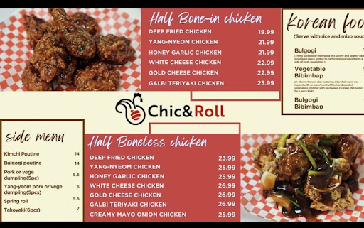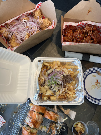 Today we ordered: Tteokkochi x 2 (rice patty skewers) Spring roll x 2 Half boneless honey garlic chicken Half boneless yang-nyeom Vegetable bibimbap Bulgogi (white sticky rice) Deep fried salmon tuna dragon roll Avocado and cucumber roll Bulgogi poutine Miso Soup x 2 They gave us pork dumplings on the house! Supplied all the paper plates, napkins, and chopsticks Tax and tip included $194