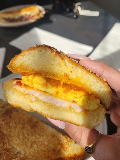Summer 2022: Cute little spot at the end of Wyse Rd. The neighborhood was overdue for something like this. Friendly staff. Three or four two-seater tables inside, that opens up (garage-door style) to a perfect little patio. Lights strung at night to give a cozy feel. I've only actually been twice so far, each time getting the breakfast sandwich. Delicious, unique tasting with mortadella, pickles, lettuce, fried egg, gooey melted cheese, on a buttery seeded bun. (My description from memory, not copied from their menu). Doesn't come with a side, but each time has been filling enough for me. Good, fresh chocolate chip cookies and chocolate cream puffs. My one wish would be that the hot breakfast menu is expanded. I definitely will come for lunch or dinner soon.
