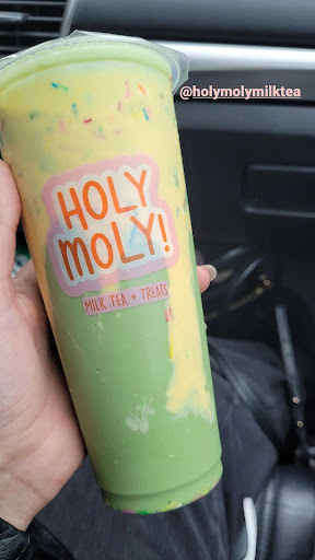Today I am reviewing the place Holy Moly. Holy Moly is a building that sells bubble teas and snacks. There is a shelf in a corner with boba-themed souvenirs like stuffed animals and stickers. They provide tables for you to sit at while you enjoy your drink and food. What I like about Holy Moly is that there are a bunch of different flavours of bubble tea for you to choose from. There are fruit teas and milk teas, even special teas that they have like seasonal teas. Holy Moly also has different things that you can put in your drinks. They have pearl bobas, popping bobas, jellies and puddings. What I think Holy Moly could improve on is having more than one worker in the building at once. When they are making your tea, there is only one person making your drinks. I think they should have at least two people making bubble tea so that you would get your order faster. What if you were in a hurry to get somewhere? I would recommend this place to people who like drinking bubble tea and people who want to try something new to drink. I would rate Holy Moly four stars because whoever is working there is really nice and the service is pretty good. Overall, the flavours are nice and I would recommend going there. Holy Moly is a great place to...