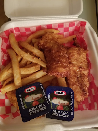 The fish was terrible. The batter was supposed to be beer batter. I don't know what it actually was but it was so thin it was see through and not at all fluffy. The fish was rubbery and bland, totally unappetizing. The batter was so over cooked it was blackened