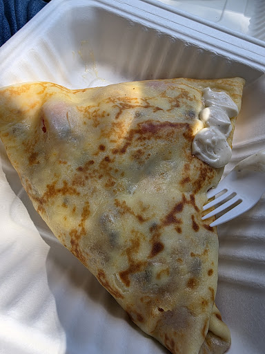 The Eat Your Veggies is probably the healthiest one on the menu, and still very good. Balsamic vinegar at the first bite gave it an immediate hit of strength of flavor. The sweet potato, peppers, tomato & onion fill up the crepe more than others I've had recently. Looks like grated carrot on top, but if it was, I couldn't tell. Pleasantly surprised overall...