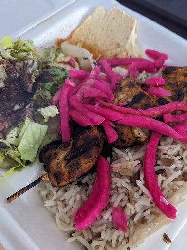 I ordered a chicken souvlaki plate which on the website says that it's supposed to be $11.99+tax for 1 skewer. They charged me $14.49+tax. The chicken skewers were barely edible since they had been mostly charred (see photo) and were extremely dry. The fatoush salad was lackluster and the pickled turnips were also dry af. My friend remarked that the pita bread looked like it had been picked up from the streets of Aqraba. Hummus was also pretty bland in flavour - it needed more garlic for sure.