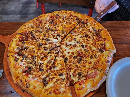 Food is great; what you'd expect from a pizza hut. But I can't help but judge their lack of online. It seems they refuse to be available online just so they can make up their own prices... Not very franchise-ee if you ask me... I asked about a BOGO coupon, they said no-go, and then I asked for half and half pizza, and they said they couldn't put each sauce on each half, the entire pizza had to be one sauce or the other. Only order here on super rare treat-based occasions because I just don't approve of how they run...