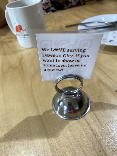 This tiny restaurant stated that “we love surviving Dawson City”. It is true that they only love to serve Dawson City, not tourist. This morning we went to it for a simple breakfast. I was the latest one to enter the restaurant amount three of us. My partners already ordered breakfast for me and the foods were on the table. I directly walked to the service counter and asked for some hot water. They charged me for a dollar for a bottle of hot water plus tax. I told them I already spent over 45 dollars just on my table of three people. They said I used the machine to make hot water. And later on said that i used the service of the girls. The owner said that if you go to any restaurant everything is for a cost. I should pay tips for the service. We already paid 5 dollars tip for the ford we bought. This is a fast food style restaurant. They simply present you with the premade food. They don’t have any service at all. After all, they charged the so call tips to the girl with tax!!!! That’s totally ridiculous. Whole my life I go any restaurant to consume and I never asked for fees for a cup of hot water. This restaurant is the first one to claim a cup of hot water bearing cost after customer paid over 45 dollars services. The owner forgot that we are staying here for two days and will return from Arctic Ocean for another day. He lost two more 45 dollars of business for a...