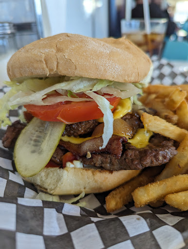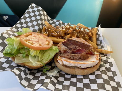 Read moreI tried their Smokey and The Bandit hot dog and it did not disappoint. Juicy, crunchy skin and yes, it was Smokey too. It was dressed with grilled sauerkraut and I topped it off with some yellow mustard. It was what I remember Toronto Hotdogs to have tasted like from my youth. (Joyful tear) I opted out of their combo so I could try their Smokehouse burger. If a 5 guys burger and an old school Banquet burger from C&W (C&Dubs… For those who know), yeah so if they smashed (lol); this would be their love child. Double smashed patty with American cheese with two thick slices of Smokey, spiced bacon crowned by three rings of crispy golden fried onions and drizzled ever so delicately was some ketchup. All this goodness was sammiched between what tasted like a butter toasted Kaiser bun. It was a cool vibe and the service was good and the food was cooked to perfection. This place reminded me of the old school tv show Cheers. The customers coming in and out all were greeted mostly by name but all with a warm smile and pleasant attitude. If you enjoy 50’s retro diners with food to match, this is definitely on your to do list. They close kinda early if you ask me, but if my food was as good as theirs, I’d dictate those kind of hours too. Thanks for...