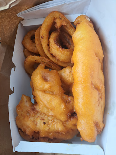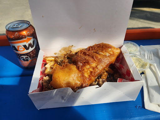 I'm not even from Canada. So when driving from St. John's back on the highway? I searched in all I found was A&W and this place. I've had fish And the chips The three times in the last two weeks of the extended vacation, And all times the fish could have very well been from a Large restaurant food service company. I mean, it was fine, but it just wasn't anything special in the fries tasted like they came par cooked from a big giant box of fries. This is definitely a hole in the wall search of speak. It's not food truck, it's food trailer, which is fine. You step up and they're extremely friendly to order. I was in the mood for Onion rings so I substituted onion rings and So far, my fish servings have been quite small so I got the three piece and DANG! fatboy almost couldn't eat the 3 piece. The batter was magical as well. I've never had calamari so far in Canada so I Ordered a side of calamari rings. If I had any constructive criticism. I would say just leave it off the menu. The fish-and-chips itself. One piece or 2 piece are an excellent value, even the Three piece. The calamari It's about a dollar for each piece, and you get like, 7 or 8 rings. They weren't cooked too bad but I'm 95% sure they weren't from scratch either Because they were exactly Uniform and did not Include any tentacles. The order came out fairly quick. I can't wait to...