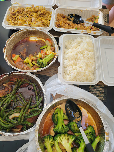 I brought my slightly cooled off food home. The fried rice, chicken chow mein, and green beans with beef were good. The szechuan beef and chicken snd broccoli were bland. They tasted like the already cooked veg and meat had been tossed with the sauce---not cooked with it. And our fortune cookies were stale. Bland as it was, we needed to eat.