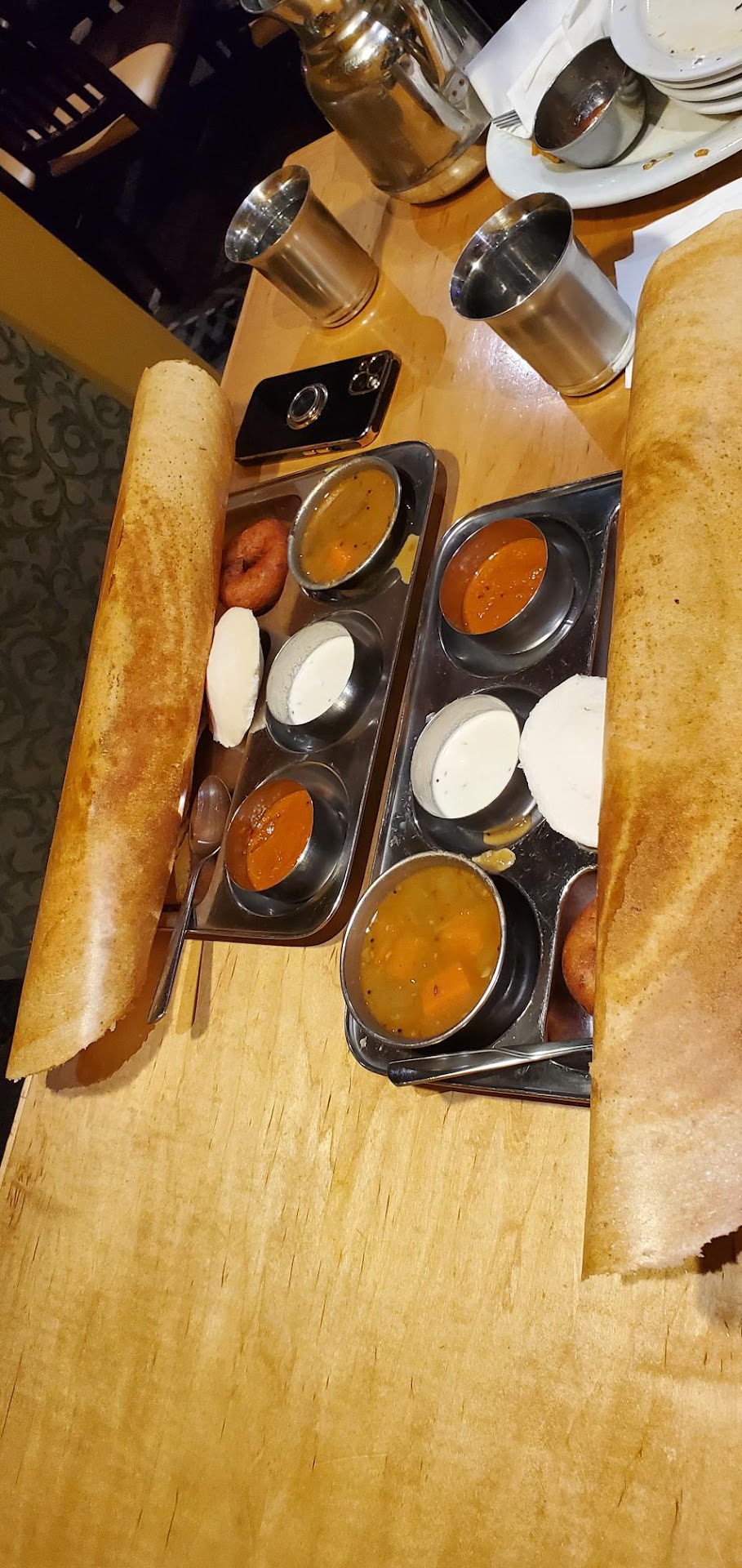 Read moreThe 2 stars is for the Great Food. Really wanted to give them full stars. Me and brother walked in and were kind to the servers and enthusiastic when our dishes came... ... One of the servers who took our full order did not have a pen or pad and ended up forgetting one of my items. I thought ok it's fine she must have forgot and the restaurant had like 60-70 percent occupancy.... Well me and brother finished our appetizer, finished our dosa's and still no waitress came to check up on us to ask us how our food was. I confronted the waitress when I got up to pay and guess what, she charged me for the forgotten item! and her excuse was she was busy. She lied because I had a clear view of the till and bar and she was there the whole time talking with her friend laughing and talking out loud. It's honestly embarrassing to write this review. When I brought it up again. She was so rude and said "I already said Im sorry"... Instead of trying to make us happy and alleviate the pressure, she was trying to play victim. I would have definitely overlooked this if she handled my concerns instead of brushing me to the side by saying "I already said Im sorry"