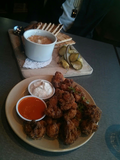 We’ve been several times since I first reviewed. Here is the new menu with the Summerfest $5 menu now integrated into the regular menu, note new lower pricing too. There are also $5 drink deals that are not on the menu, ask if they don’t tell you about them. We returned today for the Loaded Smash Burger ($11), comes with 2 Pattie’s, bacon, cheese, lettuce, onion and fries. This is a full sized portion, not the smaller Summerfest burger. We also ordered DF Pickles and Torpedo Shrimp.($5 ea.) before we knew the burger was so filling. See new pics.