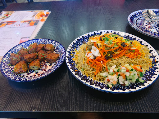 For mains I got the pamir vegetarian plate. The baked white rice tasted like dried up rubber. I was really disappointed đ the potatoes just came in a watery đ gravy. But the spinach and the eggplant dip that came with it tasted good.