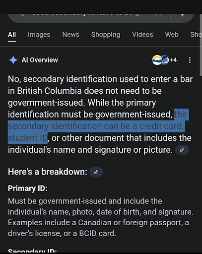 To top it off, I looked it up after the fact and turns out a secondary ID doesn't have to be government issued like he said and the official BC government website even uses school IDs as an example of what is acceptable as a secondary (screenshots of official regulations shown below).