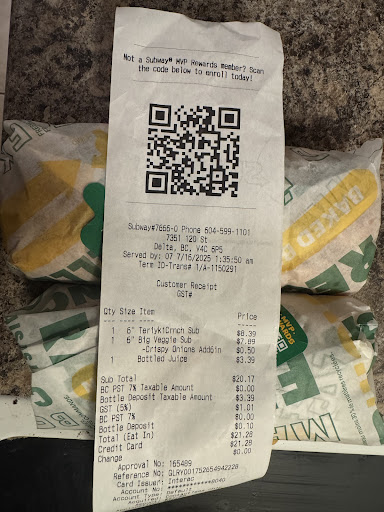 To make things worse, I was charged $21 CAD for two 6-inch subs and a drink, which is completely overpriced. What’s more confusing is that the prices in-store were much higher than what the app shows. I don’t understand the inconsistency—there should be transparency and alignment between the app and in-store pricing.
