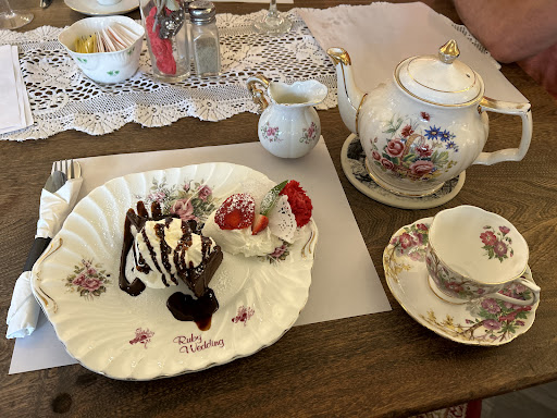Read moreThe chocolate cake is amazing. I almost didn’t want to order it because it’s gluten free and I thought that would make it less enjoyable but I couldn’t even tell. It was delicious! The chai tea was spectacular also. My mum had the scone with cream and preserve which was very delicious as well. My dad got a beer so he was happy! The service was good. The only problem we had was when we first arrived 5 minutes early for our reservation they had us wait 35 minutes to be seated. It was not a good first impression for me but my mum assured me it was worth the wait, and it totally was!! I didn’t want to knock stars off for the bad experience being seated because I think it was a one-off because of a large group taking up all the tables. Regardless they should have at least let us know it would be a while. It felt like forever waiting in the antique shop next door, not knowing how much longer. Anyway overall this place is excellent and I would definitely recommend it to anyone who wants to enjoy a nice tea and dessert in a very well decorated interesting tea...