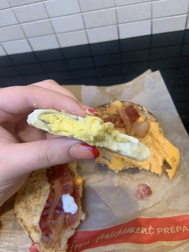 Ā Ā Ā Read moreThis is for the tim hortons in the mall. I went up and ordered a large vanilla ice coffee with a BACON AND EGG sandwich. All was well, they gave me my coffee fast. not as full as the timās i usually go to but i didnāt care, i waited to receive my sandwich and when i went up and asked they gave a sausage and egg. im allergic to sausage. i went back and ask for the bacon and egg sandwich i ordered and told them i am allergic to sausage. the guy put up a little fight but went back, i think all he did was put it in a new bag because when i opened it, SAUAGE AGAIN. i went back for the THIRD time, when i got the sandwich, it was finally correct. but some of the egg was GREEN. Half of the staff you could barely understand, definitely donāt recommend this...