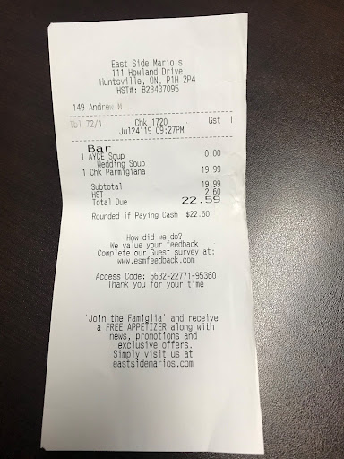 We are family of 4 (with 2 kids) visited the Huntsville's Eastside Mario's restaurant during our vacation on Dec 16, 2022. We are regular customers to Eastside Mario's at our hometown. We ordered a full meal Chicken Parmigiana pasta which comes with all you can eat salad/soup and a Pizza, which is normally enough for us.