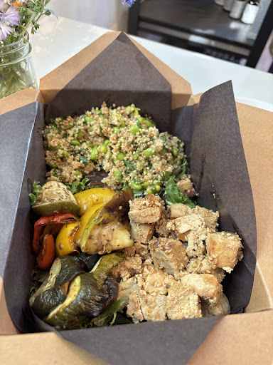 Ā Ā Ā Read moreGood spot for healthy brunch, very vegetarian friendly. I got 3 items from the deli (make your own platter): the tofu, quinoa with edamame and roasted veggies. The tofu was amazing, seasoning on point. Veggies were fresh, quinoa nice and juicy. One thing that threw me off was that all food was super cold. I guess I expected at least the roasted veggies to be warmed up. Food was really filling and they have generous portion size, got a bag to finish it later. I also got the super latte. Tasted mostly like regular latte, maybe a bit creamier and not very strong coffee taste. The ambience is great, very lively, thereās health items to shop too. Service was fast and everyone was very polite and welcoming, despite how busy it got. Overall, great place to grab healthy food,...