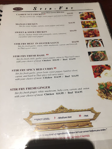 Read moreFood was ok; but the service was really bad! Not sure if this is really allowed in Ontario restaurants, there is a washroom next to a table, which really made our experience stinky. The doors to the washroom were also just left open. We had to get up a few times to close the door after people used it, to help with the stench a little bit. We had to pack up our food after a few mintues and take out to eat elsewhere. But before that, when we were waiting inside for a table, we were not acknowledged for a long time and then were handed menus while in line. One of the things we ordered was drunken noodles with tofu and veggies which are marked as extra spicy. The noodles were not spicy, but rather a little sweet, and had no tofu. We tried to ask about it, it took a long while before we were able to wave over a server who said they put tofu in it, but I showed them plate with no tofu and they said « okay ». No one came back to our table, eventually we went to the front counter to get a take away box and pay. I asked about the noodles, and was told « oh we might have run out of tofu ». That was all. TLDR; don’t sit at the table at the back by the washroom; be prepared that you won’t be able to wave over any staff (besides getting sat and...
