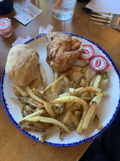 Each time I have gone there......the chicken was burnt on the outside and still pink in the middle......which means you're oven temp is to high ok...you need to fix that......and.......they have forgotten the poutine order......all four times....