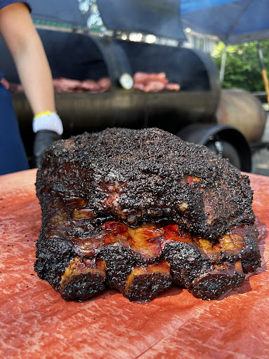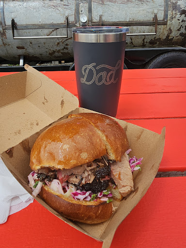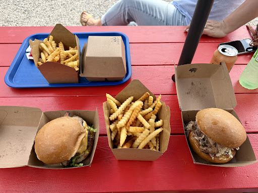 Read moreBetter than expected! Their aesthetic isnât exactly wonderful, in that youâre literally sitting in a gravel parking lot with cars coming and going. Additionally, although itâs great to see them smoking their products close by, itâs not ideal for you to have seating only available beside a smoker on a hot day. That being said, the food is actually quite good, if not inexpensive. Specifically, I had the deluxe hamburger and french fries, which came to over $25, which I consider on the high side for this kind of set up. However, both the hamburger and to a lesser extent, the french fries were quite enjoyable. What was most memorable about the hamburger, is the combination of flavours, including relish âď¸, which I historically have never enjoyed, were balanced to perfection. Even the bun which had plenty of dough in it, didnât bother me, whereas most do (ie I hollow them out typically). The fries were apparently cooked in beef fat, but were not overly flavourful. The best thing about it all, was after feeling quite full after this lunch, I got no gut rot, which would often be the case with this kind of food (i.e. hamburger and fries)...