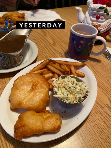 We visited yesterday for a birthday dinner and the experience was not like our previous 5 star visits. We have dinned here every year for the last 4 years and up until now it was our favorite fish and chip place. The atmosphere is clean and the teapot collection cute. Christmas is our favorite holiday and to be served tea from a Santa teapot warmed my heart🎄🤶 (initial experience yesterday) it went down with the food and service We ordered the one piece fish and chip with gravy x2 what we usually order. When it arrived we were extremely disappointed. I know shrinkflation is a thing however this seemed alot. With each plate having approximately 20 or less French fries. It was the plate size and French fries that were under whelming and disproportionate (typically the fry portion doesn’t change from 1 piece to 2 piece dinners. With what we ordered I also thought it would be kind if our server had said 1 gravy will be enough to share for the 2 of you with the few fries you will be getting. When I asked the server if she could please return one of the gravies when the food arrived as the serving is smaller than we previously have experienced. She got very loud and shouted at us that it was the same 2.5 oz serving as it has always been and she can’t return it to the kitchen. (Yes she could have taken it away) she did however remove it from the bill. Thank you. We were not mentioning the fish size, rather the plate and fry portion. It was unfortunate that her reaction was so loud and harsh as other customers watched.and you can see from my previous review, the service was amazing previously. The fries were hard and over done and really tasted like plain frozen fries. Although fresh fries are best, in the past we don’t remember them to be so bad. And the gravy was very clumpy. You can see here form my previous post from 2 years ago the reference to the difference in the 1 piece fish and chips in 2 years. The current sizing is ideal for a senior. And when people (adults) order it it should be communicated that it is a small child or senior portion. Based only on our visit yesterday I would actually rate it a 1/5 as it was a birthday dinner and celebrating a special occasion we were going to have brownie and ice cream for desert but opted for DQ as being shouted at affected the experience. I get prices have increased for groceries (which compared to several other fish and chip places. West side is a few dollars more than average and on top of the serving size the quality has gone down so the price point doesn’t match. This is just our individual experience and based off of yesterday we would not go back. I’m sure many people will still enjoy it.😊
