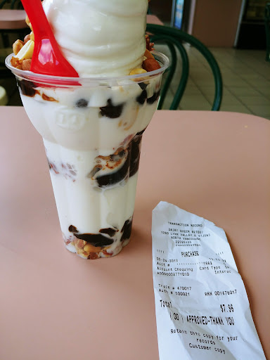 Very disappointed in the service and the way they make their products at this location. The Peanut Buster Parfitt is a poor excuse here. I spoke to the manager about this and he said this is the way it is supposed to be. I have been going to DQ for about 40 years (Yes, 40 years) and getting the same thing. I expect my favorite treat to not look like it was scooped off the floor and have the proper amount of stuff in it. BTW, it was the manager who made it... Then he came out with a new one after a got my money back and showed me an example of how he was going to make them from now on. (Not to replace it... just to show me) He is just going to put the fudge on the outside so you can see it and leave it out of the center. I would rather drive out of my way to get a DQ somewhere else or if in Lynn Valley, go somewhere else.