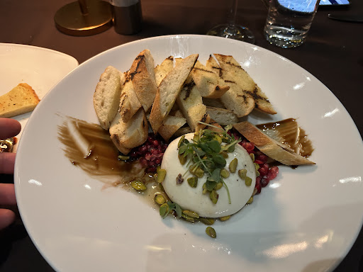 We had three different staff looking after us. They suggested items not on the menu so to start, we selected the Burrata with pistachios, pomegranate and a honey balsamic drizzle with sourdough strips. This was a delicious starter, and very filling!😋