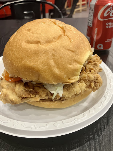 Read moreI was walking looking for a place to grab a bite as I got off the airplane and found this place. I ordered the Spicy burger all dressed as recommended. When it was ready I picked up at the counter and sat down( table was not wiped down but I figured it was 10pm maybe they were going to close ) It looks like a huge chicken burger, loaded. I took a bite and enjoyed that first bite Spicy crunchy . I took another bite and felt that it seemed too crunchy. So I decided to open the burger to see how it looked . All that sauce etc not surprising as many good burger have that mess under the hood. I peeled open the chicken and found a thin slice of chicken. The chicken was cooked fine but that breading was wayyyyyy too much for me and my gut. I ate the chicken slice and left the rest. So 3 out of 5 for me . Price point too high for bread and crunchy stuff not enough chicken. But that just my opinion and seems like others...