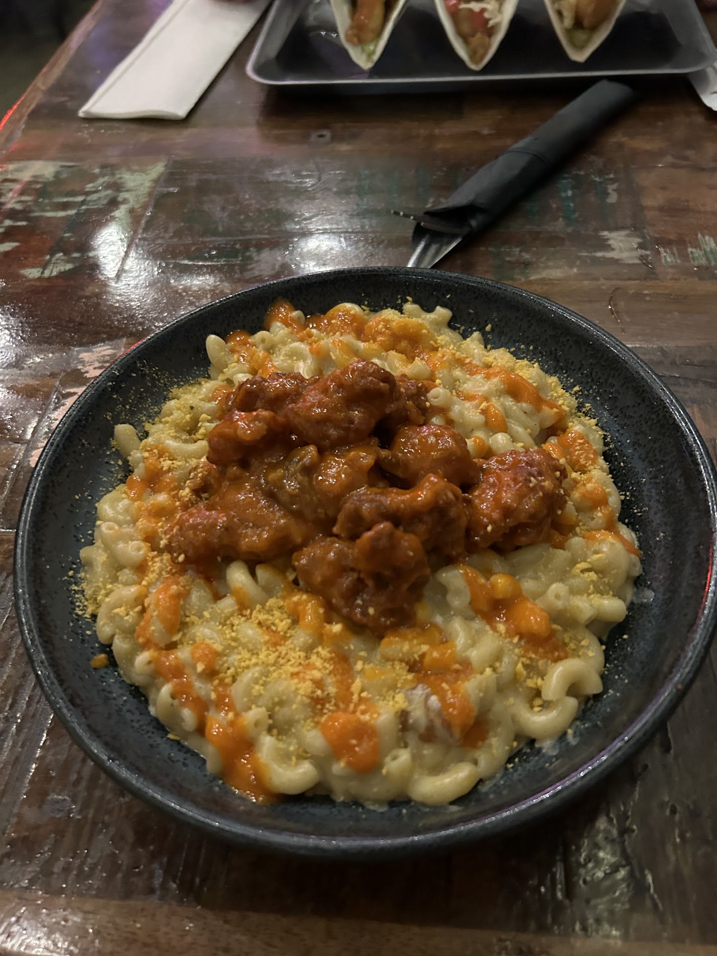 We got our drinks, which were both refreshing and beautiful to look at. Time flew by as we enjoyed some 90's hits, and before we knew it, our nachos and crispy tofu bites arrived. The portions were huge, the presentation was on point, and everything was so tasty. At no point were we rushed, and we even had time to digest our appetizers before our main dishes arrived. Being at a wingery, it would have been a crime not to order some wings, especially with the number of sauce options available. Honey garlic has always been my go-to, and I have to say, I was not disappointed with that yummy garlic taste. (I WANT MOREEEE). My partner had the cauliflower wings with the hot and honey IPA sauce, and they were fantastic too. I'm not a fan of beer, and thankfully it didn't taste like beer, so we were both pleased.