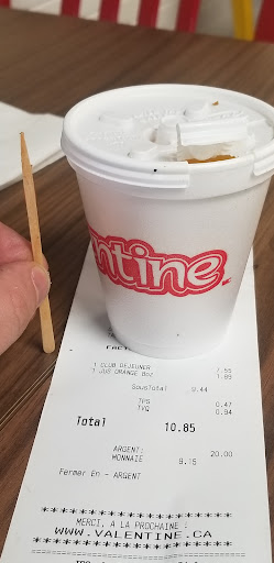 Par contre la propriétaire, c'est un autre histoire, jamais de bonne humeur, je vais manger la 1-2 fois semaine. Ce soir j'ai mon repas (je travaille dans le centre d'achat) j'oublie mon ketchup à la maison donc pour me depanner je vais au Valentine chercher 1 cup de ketchup et c'est le drame car je n'achète rien à manger, et elle dois payer le ketchup je lui dit parfait, charge moi un breuvage pour le ketchup si ce n'est que ca le problème et la du plus belle aire bete elle me dit "c'est beau prend le mais la prochaine fois faut...