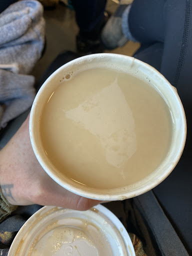 The barista also left the milk steaming unattended while she went to go make other drinks and it all boiled over, she then separated the burnt, bubbly foam with a strainer and poured the remaining milk into my cup… I attached a photo of my $5 “latte”. Milk needs to be steamed to a certain temperature to avoid scalding, and a latte is also supposed to have foam… The espresso was watery and under extracted and the drink was just awful.
