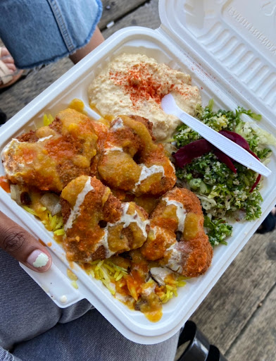 Interested, me and my friends ordered a lamb plate to split and i immediately noticed 3 things. The rice was turmeric yellow, the hummus was like silk, and the salad was far better looking than the pictures on the truck.