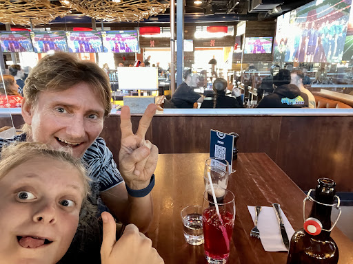 We were there for dinner. First of all the service was fantastic and we were happy that we were served in English. Our server recommend a local beer which was fantastic. My wife had the Cowboy sandwich which was pretty good, though the accompanying dip was a little strange (it tasted like a herbed oil). I had the double blitz burger which also was pretty good. It’s ridiculously tall and I challenge you to eat it as a sandwich (because a burger is a sandwich, right?). It was a bit noisy, though it’s a sports bar so I guess that’s to...