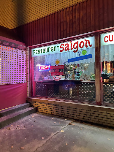 Read moreAccueil très agréable! Le proprio, qui est le même depuis toujours, est d'une gentillesse incroyable. Ok oui,le restaurant aussi est le même depuis toujours...avec son décor kitsch typique et figé dans le temps. On pourrait être légèrement destabilisé par l'apparence des lieux. Mais juré, quand on croise le sourire de Mr. Saïgon pour qui cet endroit est toute sa vie, on comprend que sa passion de la cuisine vietnamienne et des gens qui passe sa porte, va bien au delà du vieux lambris au vernis jaunis qui cohabite avec les fausse fleurs de plastique et les items de papier glacé et colorés qui pendent du plafond! Dans la lumière fort tamisée du soir, caché derrière ton petit paravent, quand tu fermes les yeux sur ta cuillèré de Pho(soupe repas), tu oublie tout ça...et le...