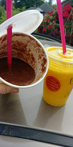 Sent in the other half to order our drinks that we get from booster juice regularly. He asked for his drink and my strawberry storm with 2 changes asking for pomegranate instead of crannberries and strawberry puree instead of the yogurt for dietary restrictions (along with our regular add ons).. to where he was Very rudely told that he is ordering the "wrong drink" and that we need to order the Pomegranate passion moving forward. Then continued to slam and throw things about clearing placing anyone around in distress! Horrible visit!