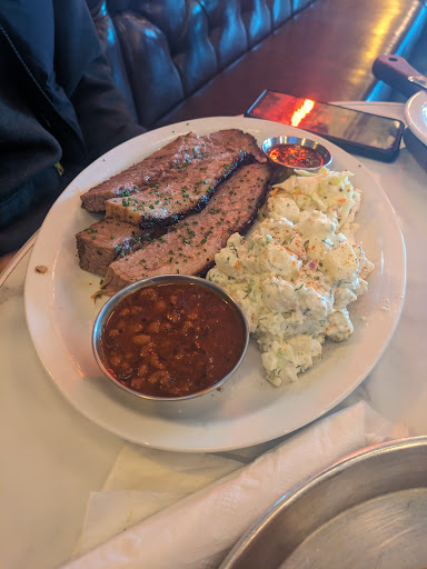The fish tacos and steak showed up after a short time. The other two entrees came out 5 or so minutes after, leaving half the table waiting. When the delayed entrees showed up, the beans and the max n cheese appeared slightly dried/glazed over as if they had been sitting under a heat lamp in the back the entire time. The brisket was alright, nothing too special. A dry, but fairly thick slab. For the majority of the table, the fries were very over done. The Ketchup seemed watered down and swished around the dipping sauce bowl like a watery sauce, as well as the guacamole in the fish tacos was super liquidy and fairly off putting in consistency. Our waitress came back to check on us very shortly after our entrees came out and we hadn’t dug in yet. We didn’t see her again until we’d eaten most of the meal and our glasses had been sitting empty for a few minutes and had to actually get her attention to try and get our bills started, etc.