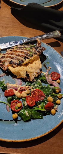 Read moreWe had gone to other locations of Milestones several times before COVID and were always very happy with our experience. Recently we decided to go to the Newmarket location. We were received by a hostess that was pleasant enough. She seated us at the closest table to the door where a draft came from the door every time the door opened. We asked to switch tables because of the cold but the hostess told us there were no other tables except at the bar even though there 2 empty booths and 4 empty tables in the center. She said they were reserved. When another occupied booth emptied we asked to move. The Hostess cleaned the booth and we had to move our own utensils and drinks. We arrived at 6:30pm and left at 8:30pm no one ever filled those other seats. We had the coconut calamari, sirlion steak dinner with vegetables and the chimichurri sea bass. The calamari and the seabass were excellent. The sirloin order was taken by one server who took our order wrong. We asked for medium-well steak and the vegetables well cooked. The steak came medium rare and the green beans came almost raw, they replaced the veggies but we tollerated the steak. They offered us free dessert and coffee to compensate and gave us 10% off. Our server was very good and felt very bad for the mistakes. She actually salvaged the whole experience. But we were very disappointed in the hostess. Although the food was very good for the most part thus the 3 stars. The experience overall left us with a bitter taste in our mouth and we will not likely return to this location...