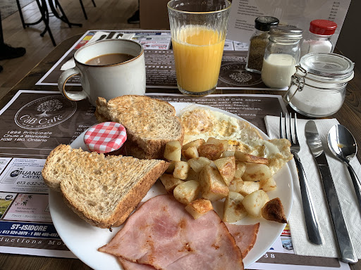 I went for the breakfast meal. They have “Le Cab” breakfast for $9. A very average price for a breakfast special. Except it only includes 1 egg (as opposed to two), there is no meat (as opposed to a choice of bacon, sausage or ham), some potatoes and comes with a tiny jar of jam. Coffee is included (and does taste great; it is flavorful and bold). This is a very light breakfast for me, so I ordered an extra egg and some ham. (What restaurant serves just 1 egg for a breakfast plate?). With a glass of OJ, my order came up to $24 with tax and tip (see picture).