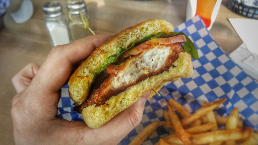 Read more-Food- The food here isn't too bad. When I visited, I ordered the BBQ Chicken Bacon Burger with Chipotle Chicken Bacon Fries and a Strawberry Milkshake. The burger was pretty good. I personally am not the greatest fan of beef in general so I was indifferent to the taste of the burger but the chicken bacon was really good. The fries were really good. The Chipotle sauce combined with the chicken bacon tasted really good. The fries themselves remind me of McDonald's fries except these are crunchier and unseasoned. The milkshake was pretty okay too. It doesn't compare to the ones at Fatburger but they are still pretty good. I also tried the Crispy Chicken Burger and the Chicken Tenders. This was a huge letdown. The chicken tenders were really dry and the outside was abnormally crunchy. The crispy chicken patty also had a similar issue. For some reason, the chicken did not taste like chicken. Personally I would not get it again.