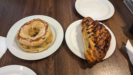 I called her over to speak with her. I asked her why and explained to her that was odd to bring our coffee and then not provide cream to our table as well. She became defensive in an arrogant and pompous way. She said that she has never brought cream to tables before. This was a lie because she brought it to the table for me when asked for it a week ago. Side note: one of the other baristas/servers brought cream to the table in a friendly and courteous manner with no problems about a week or two ago before that when my dad and I went there for the first time together (I had been there a couple times before that a long time ago). That time, we ordered coffee and some pastry. The barista/server, he brought out everything to us. We asked for napkins and cream - he brought it all out. He was a good guy. I also pointed out to her that there was cream sitting on another table for a couple of patrons a few tables down from us. The cream for them was sitting in a mini pourer just like what she brought the cream out to me a week ago in. Her response to this was something like 'maybe when they're not busy'. I guess her "busy" includes no one in line to order food or coffee. Because there was no one in line before or after us.
