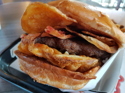 i didn't have high expectations and was impressed with the size and quality of ingredients. had texas something burger only - i was uncomfortably full after. i liked that they wrapped it in half inside the box so you can hold it. i like the little things like how crispy and flavorful the onion rings inside my burger were. i like the size and flavor of the bacon. the cheese was melted but tasted ok. the vegetables were fresh and clean inside the burger. yum. expensive, about $7, but very satisfied. i wish it was on my way to work for those desperate times i need a burger. the location has high visibility but inconvenient for me.