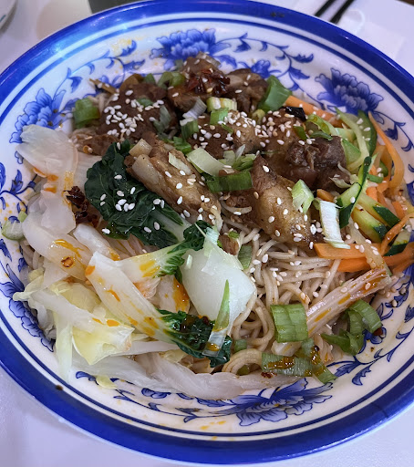 We ordered the dry version of braised pork rib noodles with medium spice. We read reviews of people saying that this place is spicy so we went with medium spice to start off. However for our dish, we felt like it wasn't really spicy at all ... we were a little disappointed but now we know to order extra spicy next time. We would have preferred if the noodles were cooked al dente since it was slightly overcooked. Definitely mix it first before eating to coat everything with the sauce at the bottom of the bowl. The pork ribs were a bit dry and there's not a lot of it. However, the flavour of the dish is great, there's a nice umami perhaps coming from the chinese bean paste, it was salty yet balanced with enough sweetness at the end of each bite. The taste of this dish is addictive, we appreciate how they included veggies too.