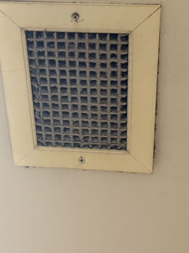 Inside, the floors were tacky and visibly dirty, and everything had an unpleasant, unclean feel. The table we sat at had a layer of oily residue, and it was obvious nothing had been wiped down properly in a long time. The bathroom was especially concerning — filthy surfaces, heavy grime buildup, a random pair of scissors left on the floor behind the toilet, a red substance on the door bracket, and thick layers of “who knows what.” I’ve included photos of the bathroom vents, which clearly show serious neglect and raise valid concerns about air quality in the building.