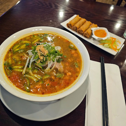 Read moreGreeted with a smile and sat promptly at 12noon on a weekday! Pretty sure it was the owner who greeted me and took my order. Fairly busy with a few tables of people. Took my time ordering as I read my book. Started with shrimp salad rolls ($11 for 4) because of the decent price. Didn’t opt in for the shredded mango at an extra $ but maybe next time! Time inbetween the salad rolls and rare beef pho. Which was perfect. I find many places rush everything out at once. Very relaxed vibe. Enjoyed the ambiance and my food. Most sauces I needed were at the table. Room to move as tables were spread out. Very clean. Fast friendly and fresh service haha The server made some fun jokes. Seemed to know how to work a room and make everyone feel at home.
