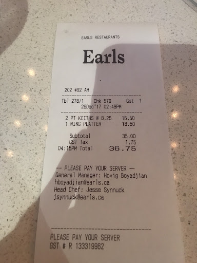 used to work at earls about 6 years ago, started the same day that my friend started which he is now a sous chef at the earls on campus .... would always recommend friends and family to go eat at earls, since i usesd to work there i know almost everything is house made... for the past while ive had bad experience going to this one "170 earls" and "WEM Earls".... everytime i know what their doing is wrong and not how its suppose to be i text my buddy which is a sous chef at the other earls on whyte.... they always make up excuses but usually take the problem off the bill. For example me and the gf went to go eat she got the cajun cesar salad and tasted fishy, knowing that they use anchovys in the cesar dressing told her they must of add too many or its old... when i told the server she said that its a new recipe and started to add more, but did take the item off the bill... texted my buddy and he told me that the recipe was still the same from when i worked there, and i have made that cesar dressing a few times when i did work there.... but no problems may of got lied to but they did take it off the bill..... yesterday tho i went to earls on 170th and sat at the bar, order a drink and was asked if i wanted food. i said ill order in 10min when its 3 for the happy hour menu. looking over the menu i see hot and jerk wings, coming there for hot wings i thought i give this a try. the menu says "Hot + jerk wing platter" in my head im thinking its hot wings "and" jerk wings on a platter so 2lbs of wings for $18.5 during the happy hour. the main menu shows wings for $13.5 which is supposed to be a pound... happy hour usually means you get a deal so $18.5 for two pounds instead of $27 for two pounds, so thats why i order that.... getting my food there was a total of 11 wings, i didnt say anything at first but took a pic and sent it to my buddy, im not much of a complainer and wanted to try these new wings... the menu also said the jerk wings came with onions ontop which they dont have as you and tell in the pic. but not much of a complainer as i am that didnt bug me as long as they tasted good, the jerk wings are pretty good and i did enjoy the flavor.... well eating my wings i would place each bone in order on the side dish knowing that at the end of eating i was gonna ask them a question... once all 11 wings were eaten they were placed on the side dish in a easy way to count to show how many were really there.... the bartender seem busy cleaning her cups and poured only a couple drinks not asking me if i was done, which i was. So there was another server beside me wiping the cutlery, so i asked her if i could ask a question she said ok... i pointed to the main menu which was still at the bar and said "if i wanted to order hot wings but wanted half hot and half bbq would you guys be able to do this" since i used to work at earls i knew the answer as ive had to do this order many times with different flavor wings, even orders that wanted them mix... all we use to do is take half the order from the deep fryer and place it in the hot sauce bowl and half in the bbq or grab a new bowl if they wanted it mixed. .. so her answer was yes, i then asked how many wings are usally in a pound she said 8-12, i said then why am i paying $5 more for 11 wings that are pretty much half jerk and half hot and showed her my side dish which you could clearly see and count.. the only thing she could come up with was "ummm its based on weight" and walked away... fair enough but how much should a hot and jerk wing platter weigh? one pound? should of just order one pond and got half hot and half jerk.... plus since i use to work there i had to portion hot wings many times, especially on wing Wednesday when the portions would run out and had to run to the cooler and grab more chicken wings and portion to order... which was usually 10-12 for a pound...