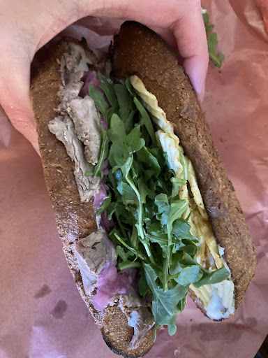 So here's how Farrow works: it's this narrow little shop and there are four sandwiches. The selection changes daily. One is usually vegan/vegetarian. You go in, pick one, and walk out with an amazing sandwich. And they take sandwiches VERY seriously inside and out. This one had a generous helping of thick slices of roast beef that's like an actual roast beef and not a mystery meat. It also has a horseradish aioli, pickled onions, and a nice helping of arugula. It's served on a thick, toasted fresh multigrain bread. There's also some potato chips in there for a nice salty crunch. Every element is impeccable, and they all play perfectly together and you can taste them in every bite.